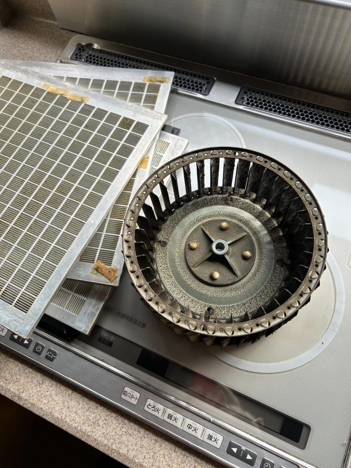 普段は見えない部分ですが、ここが汚れていると換気効率が下がったり、嫌なニオイの原因になることもあります。